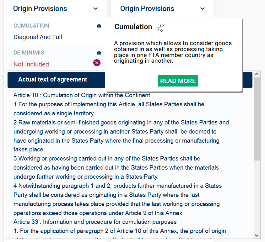 The joint tool helps to search and compare rules of origin and key provisions in a systematic and simplified manner, for most trade agreements in the world, supplemented with glossaries and annotations.
