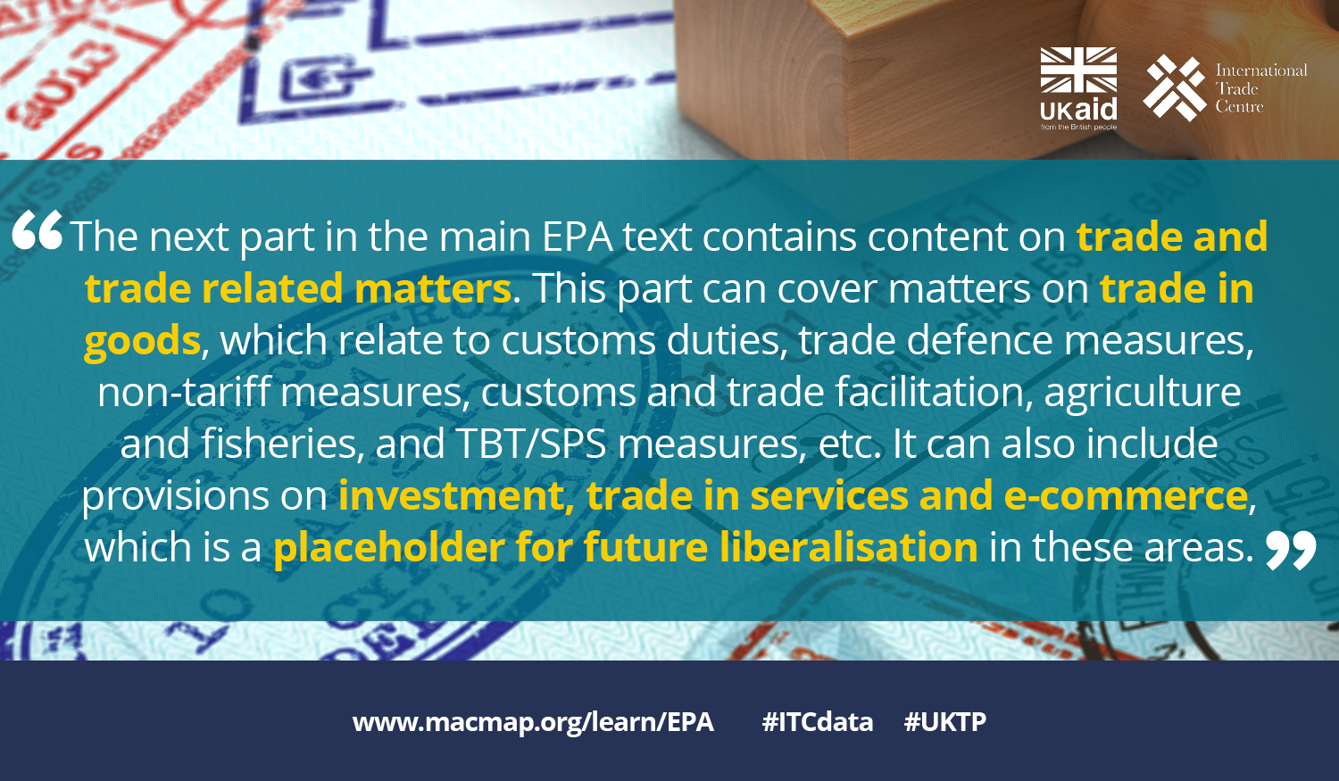 - The UK provides aid-for-trade along with every EPA. This helps partner countries adapt their customs procedures and reduce paperwork, which results in less hassle for exporters and importers and greater incentive to tackle corruption.