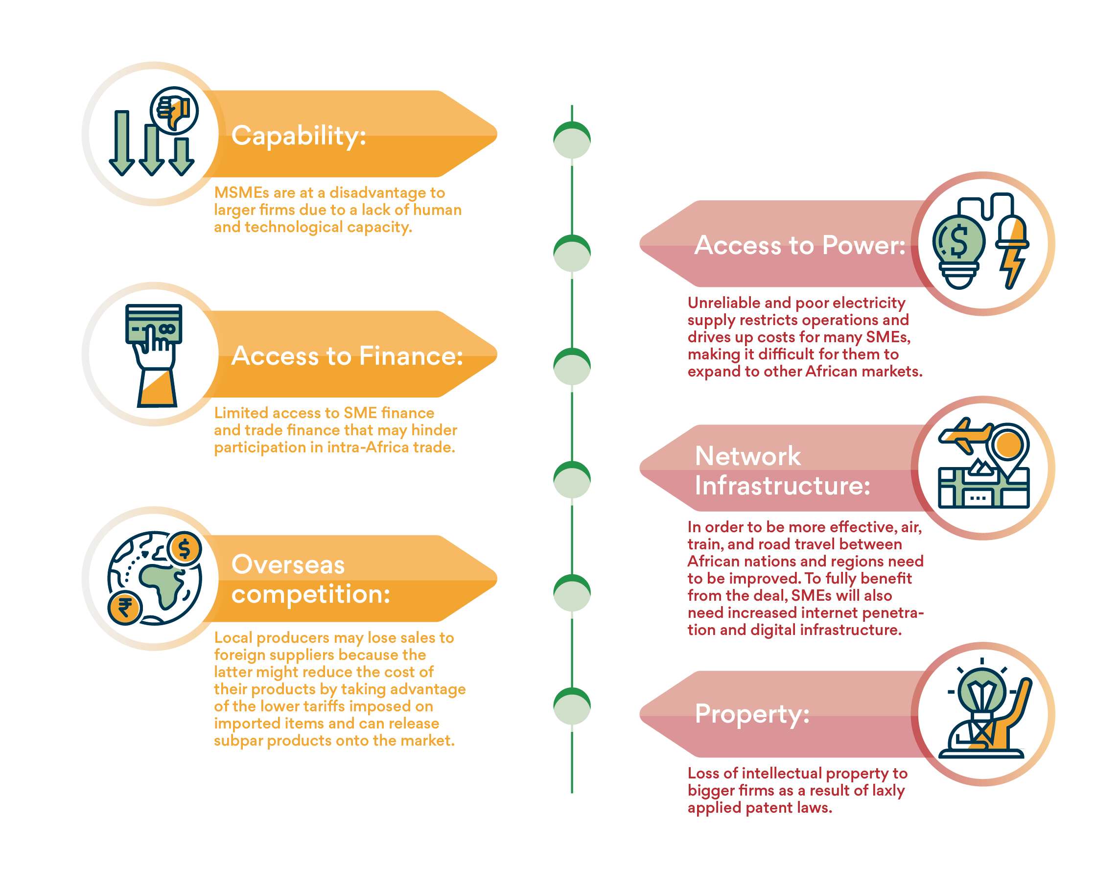 - Network Infrastructure: In order to be more effective, air, train, and road travel between African nations and regions need to be improved. To fully benefit from the deal, SMEs will also need increased internet penetration and digital infrastructure.