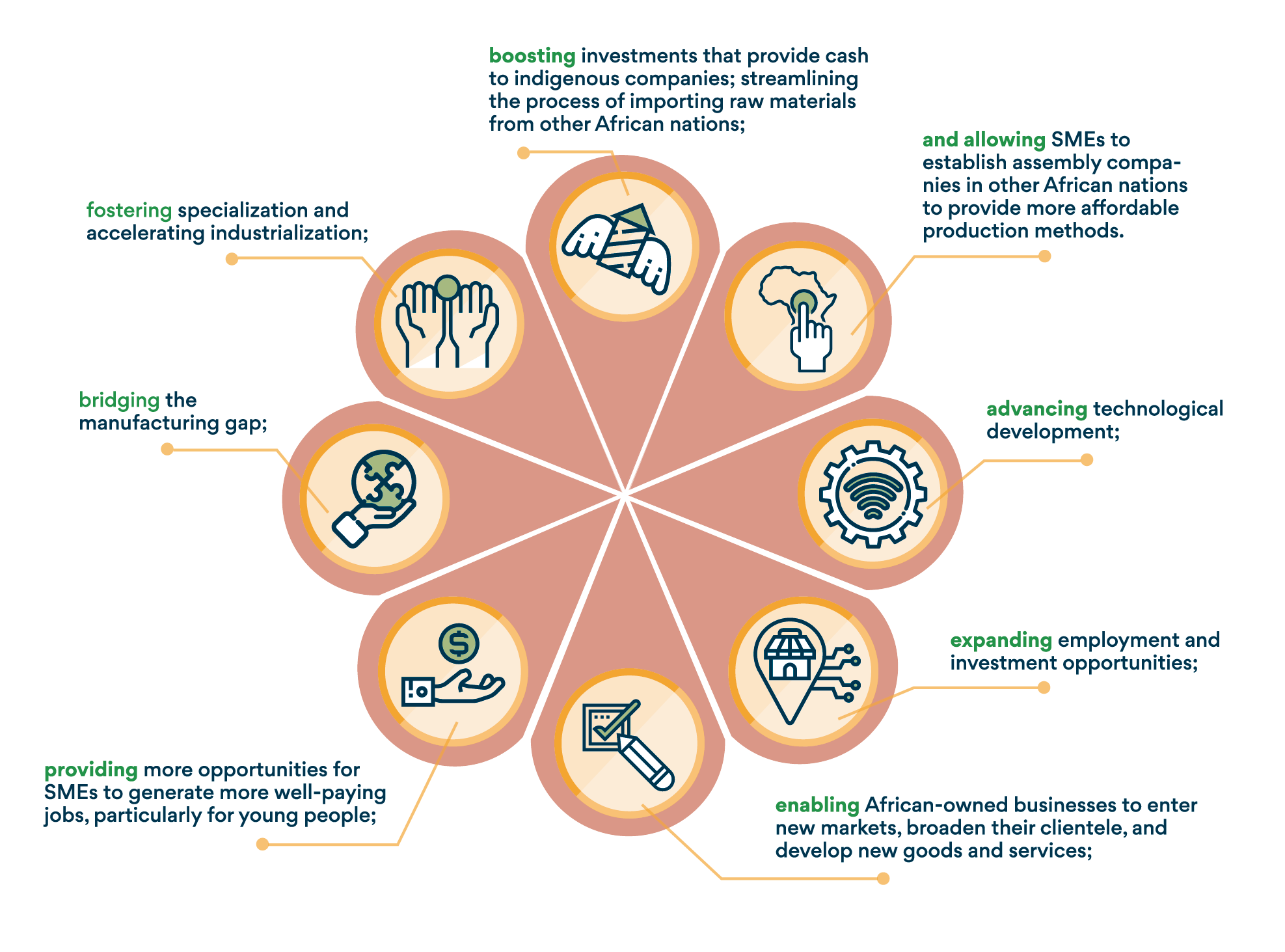 The agreement provides several advantages to African MSMEs, which are crucial given their significance to the continent's economy as up to 80% of firms and up to 40% of national GDP.