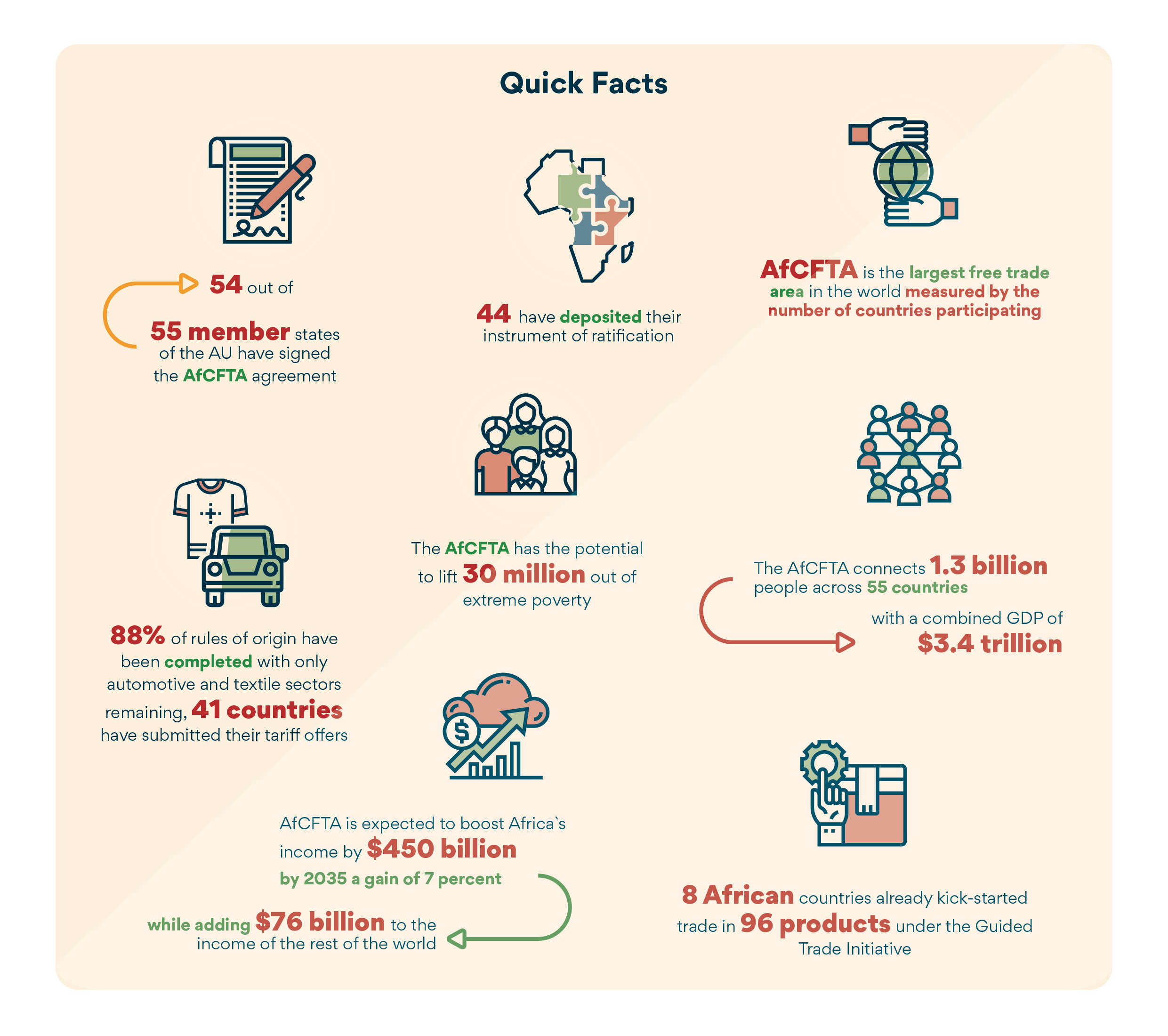 With a combined GDP of an estimated US$ 3.4 trillion, the pact links 1.3 billion people living in different parts of the continent, according to AfCFTA Factsheet .