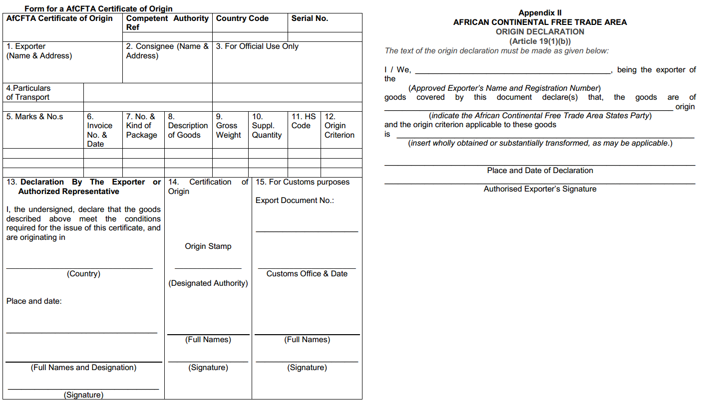 - Appendix III: A sample AfCFTA supplier or producer's declaration (to cover regional inputs)