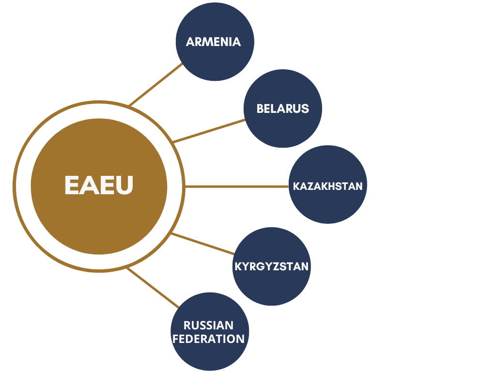 Additionally, in 1997, Azerbaijan, Georgia, Moldova and Ukraine established a regional organization GUAM [3] , but there is no free trade area in operation with distinct rules from CIS 1994. Since 2015, Armenia, Belarus, Russia, Kazakhstan and Kyrgyzstan have been member states of the Eurasian Economic Union (EAEU) which is a customs union. Since 2015, Uzbekistan has been conducting consultations with EAEU on a potential accession.