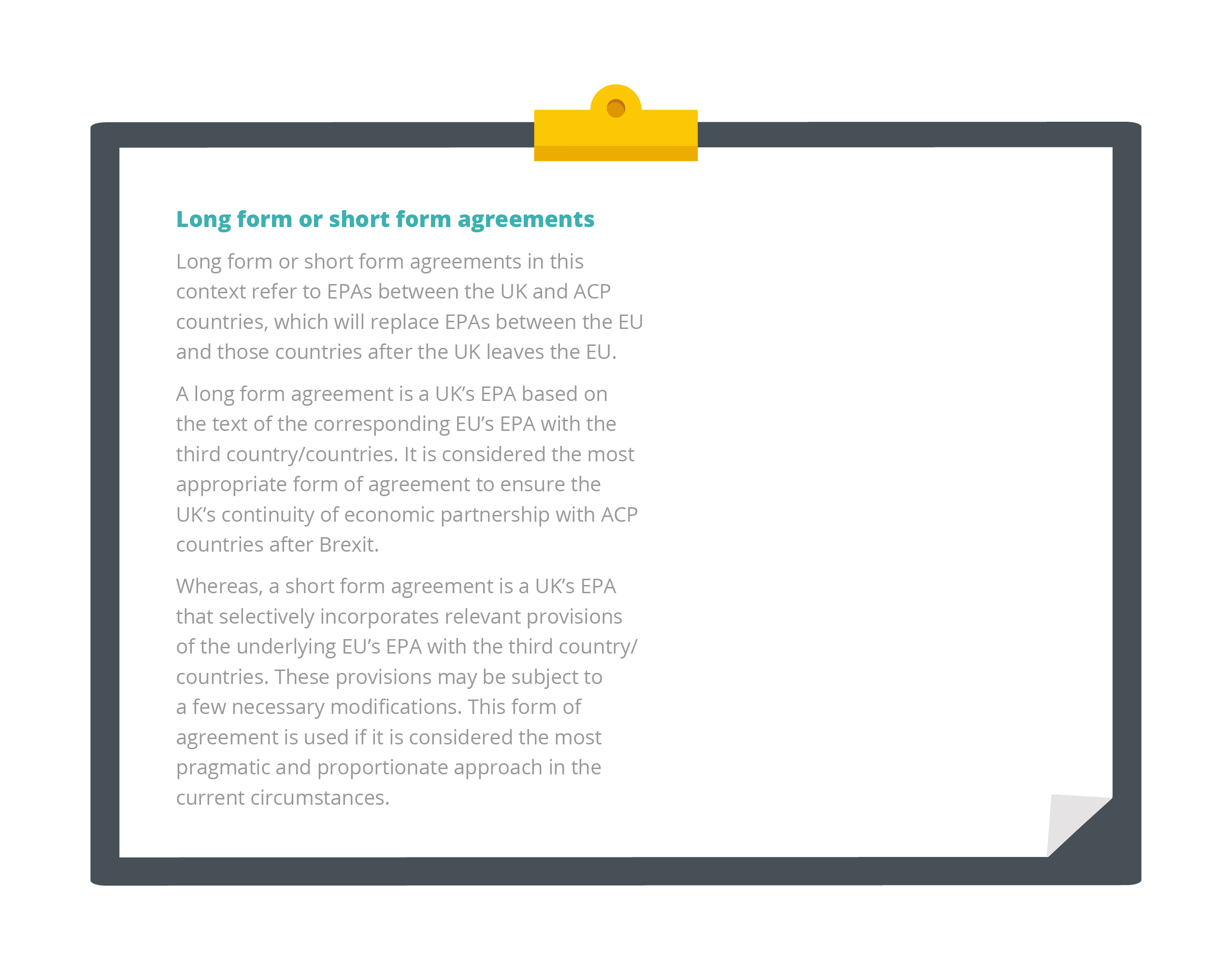 - In the past, the UK offered unilateral access to its market, which might be withdrawn at any time. By signing reciprocal EPAs, both sides make binding commitments to each other. EPAs also create joint institutions, enabling ACP countries and the UK to reach decisions together. EPAs may also come with UK development aid, which helps ACP countries to make the most out of the partnership.