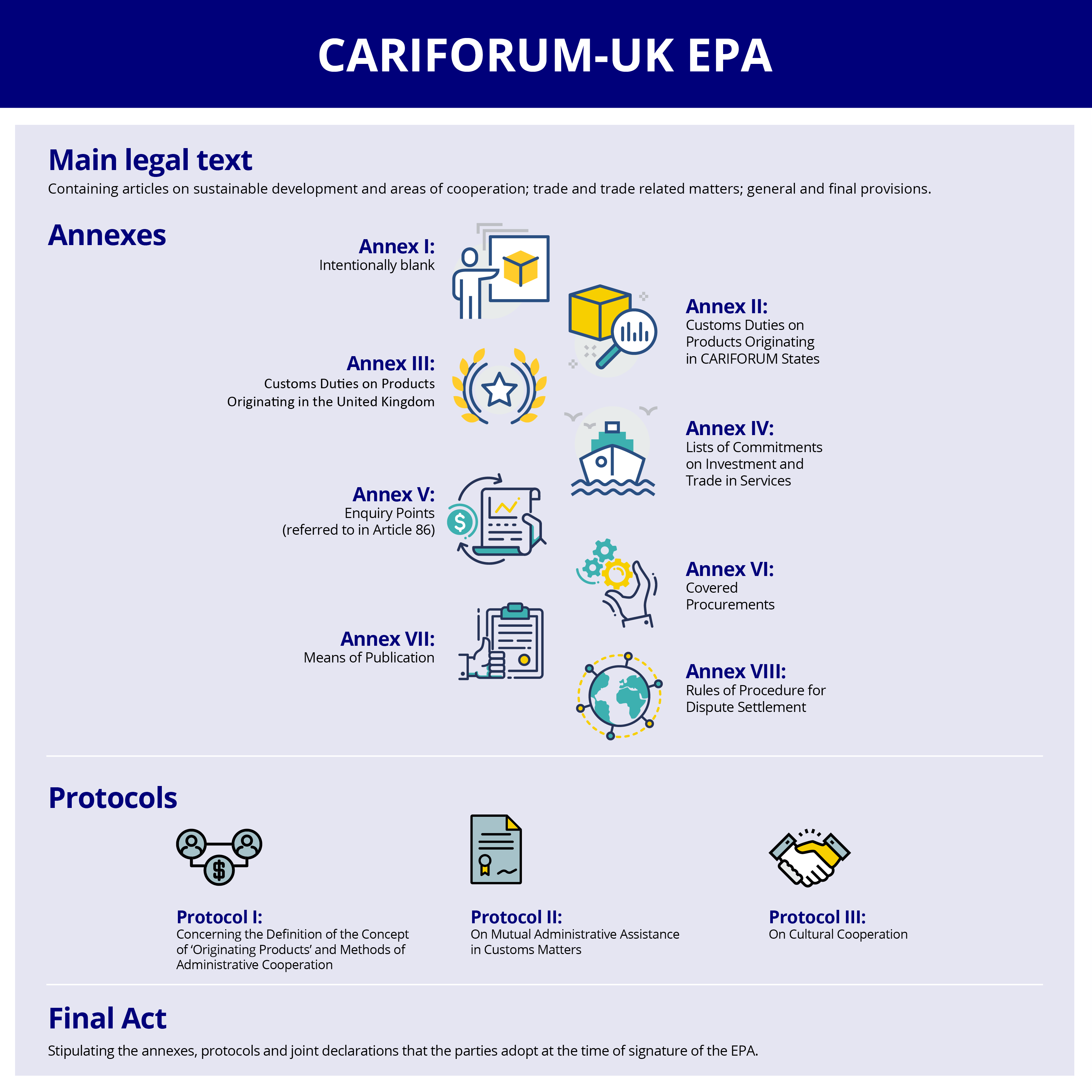 The UK EPAs contain provisions on labour and environmental standards of varying degrees, with the CARIFORUM EPA often referred to as the model agreement for sustainable development [16]. EPAs lacking such provisions contain commitments on future negotiations.