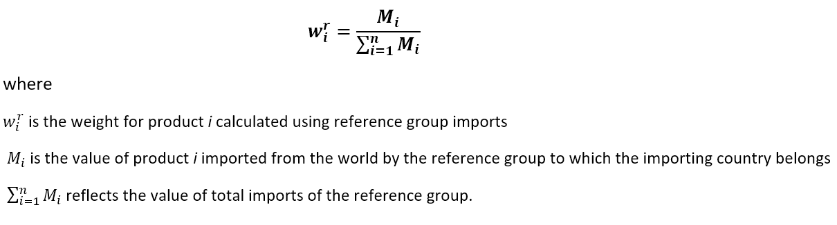 This technique controls for much of the endogeneity bias resulting from a simple import-weighted averaging. The import values of a reference group are used instead of those of the country itself.